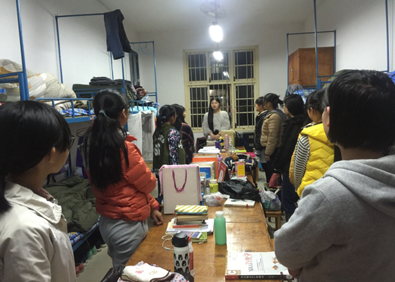 11月10日晚,微风细雨,商学院关工委杨大媛老师、许香英老师在商学院学工组孙君镕老师和2015级分会主席姜锡茂同学及组织部成员的陪同下到商学院15级学生寝室慰问新生学习和生活情况。关工委杨老师与许老师多年来一直关心着学生生活、学习及心理状况,即使下着雨也没能阻挡两位老师的热情。两位老师先后走访了芷兰7栋及13栋,新生寝室里充满欢声笑语。在轻松交谈的时候,除了关心新同学的生活状况,老师们也不忘普及安全知识教育,教导同学们如何防止诈骗,保护好自身安全及财产安全。老师们走访的几间寝室,卫生状况良好,寝室氛围融洽,对老师的到来表现出了溢于言表的欢欣。室外冷雨纷飞,室内却是一片温馨。来自全国各地的同学们把近期以来对大学生活的感受、对家乡的思念以及对长沙的适应情况热情地反映给老师们。在这个寒冷的雨夜,同学们都感受到了来自家的温暖。同学们与老师亲切交流了学习状况,家乡习俗以及家乡特色美食等引人入胜的话题,两位老师也向同学们讲述了她们年轻时的往事,虽相隔几十年,听起来却倍感亲切。在老师走访新生寝室这2个小时里,我们深切体会到了学院对新生的人文关怀,加深了同学们对学院的热爱之情,减轻了雨夜独在异乡的凄冷之感,让大家充分体会到了商学院大家庭的温暖,拉近了师生间的距离。同学们对学院领导和老师给予的关爱非常感激,表示在以后的日子里,会更加努力进取,用实际行动回报老师!