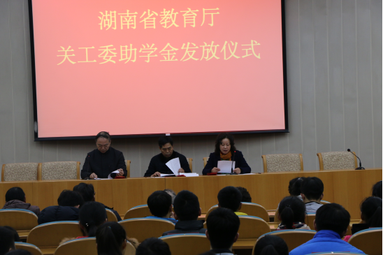 1月7日晚,省教育厅关工委助学金发放仪式在国际会议厅举行,校党委副书记、校关工委主任卢向阳,副校长、关工委副主任张立,正校级督导、关工委常务副主任彭克勤参加了发放仪式。各二级关工委副主任(老同志),各学院学生代表近200人在学校国际会议厅召开教育厅关工委助学金发放仪式。彭克勤督导主持发放仪式。