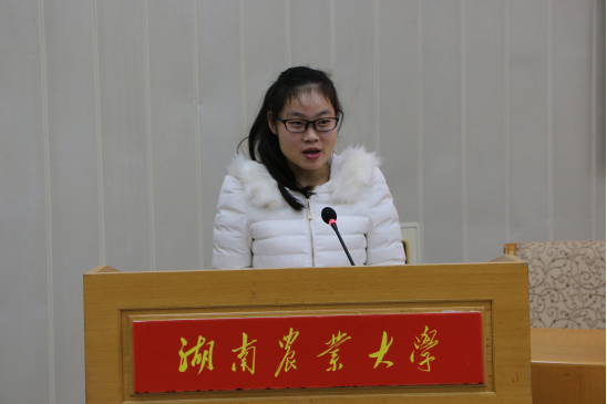 教育学院2014级学生,本次助学金获得者钟亚华作为学生代表发言。钟亚华同学还是“公益活动 人人参与”主题教育活动征文全省一等奖获得者。